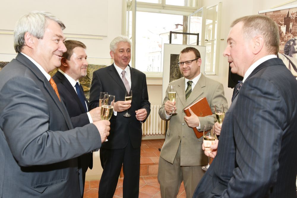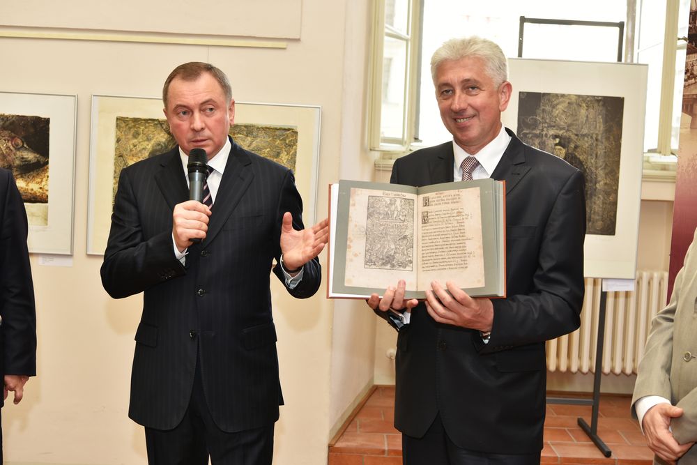 Součástí vernisáže, která se konala 15. června 2017 v Galerii Klementinum, bylo slavnostní předání vydaných faksimile edičního projektu "Knižní dědictví Františka Skoriny" do fondu Národní knihovny ČR - Slovanské knihovny. Foto: E. Hodíková, NK ČR.