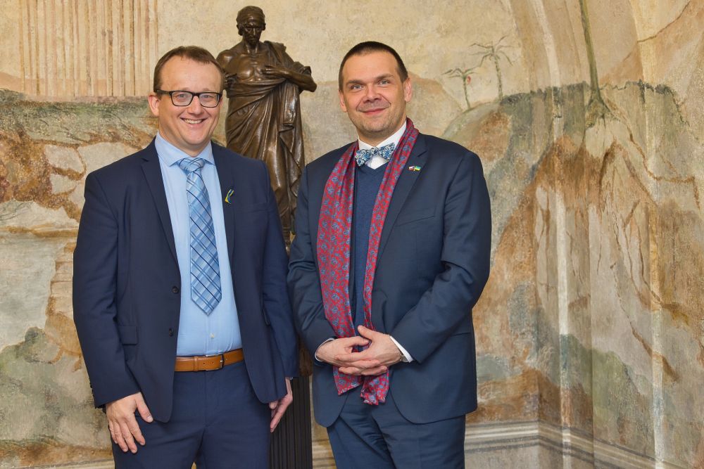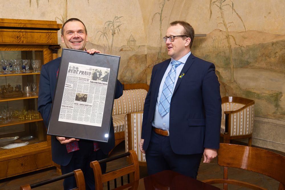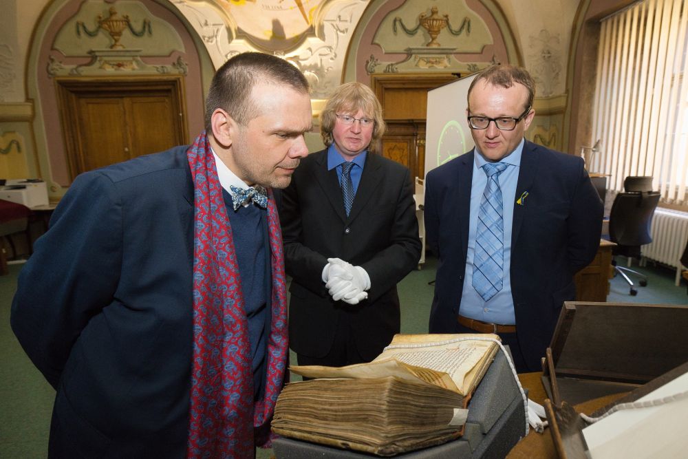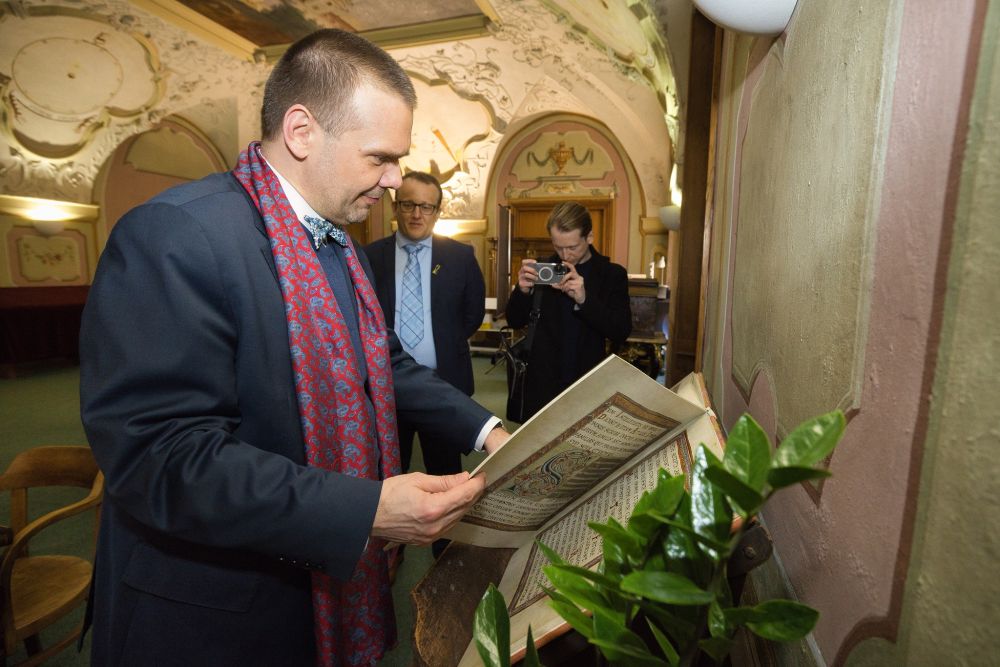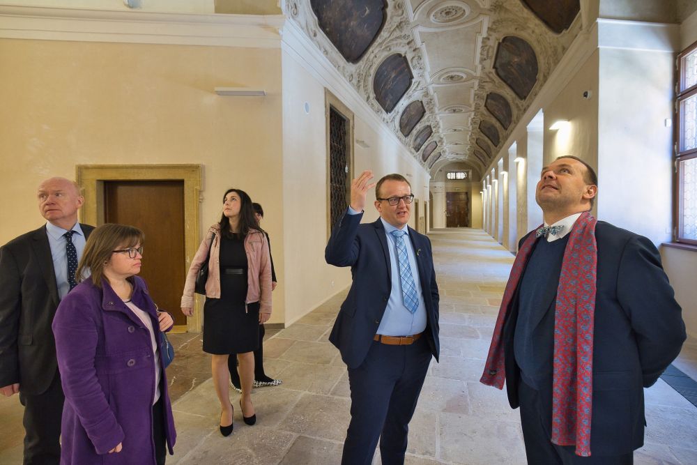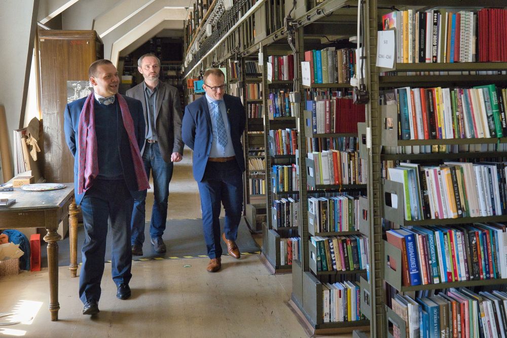 Fotogalerie z návštěvy ministra kultury Martina Baxy v Národní knihovně ČR, která proběhla 12. dubna 2022. Ministr kultury si v doprovodu generálního ředitele NK ČR Tomáše Foltýna prohlédl historické a hudební fondy, Barokní sál Klementina nebo hudební oddělení. Foto: