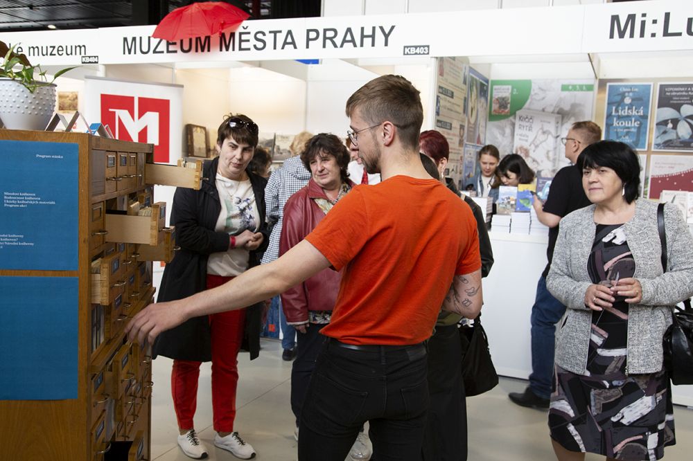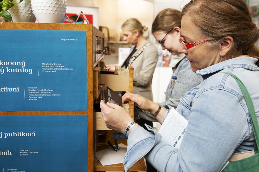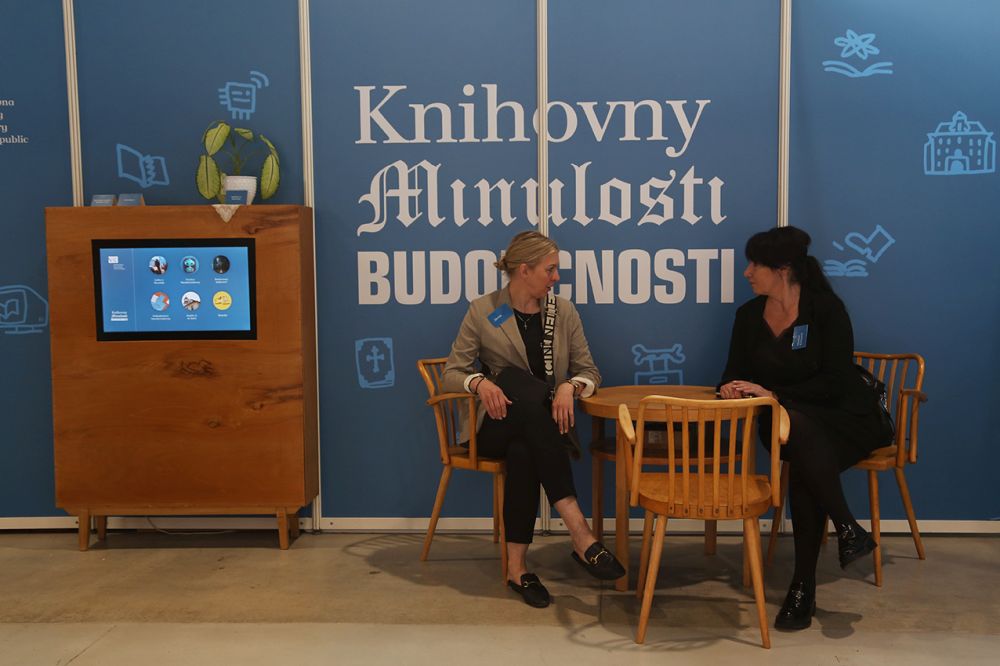 Národní knihovna ČR se na veletrhu Svět knihy Praha 2023 představila jako tradiční informační instituce, ovšem plná moderních technologií a digitalizovaných dat. Prezentace NK ČR umožnila náhled do minulosti, současnosti i budoucnosti knihoven. Foto: M. Tichá, NK ČR.