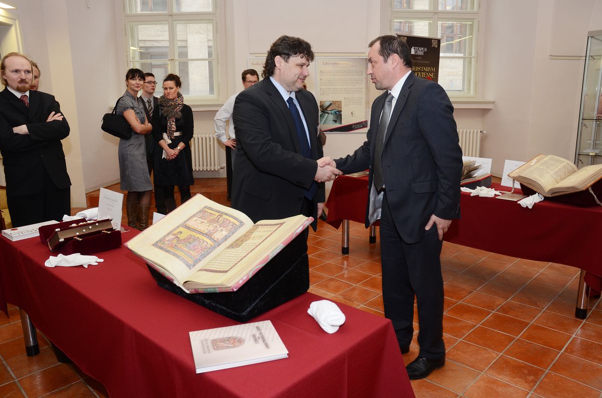 Fotogalerie z vernisáže unikátní výstavy, která seznamuje širokou veřejnost s produkcí společnosti Tempus Libri, která se specializuje na výrobou věrných uměleckých kopií vzácných historických originálů. tzv. faksimilií. Náklad takových faksimilií je nízký, zpravidla nepřesahuje 200 výtisků. Na kvalitu zpracování, volbu materiálů a odpovídající shodu s originálem dohlíží jeho vlastníci nebo odborní správci, kteří poskytli reprodukční práva pro zhotovení faksimile.