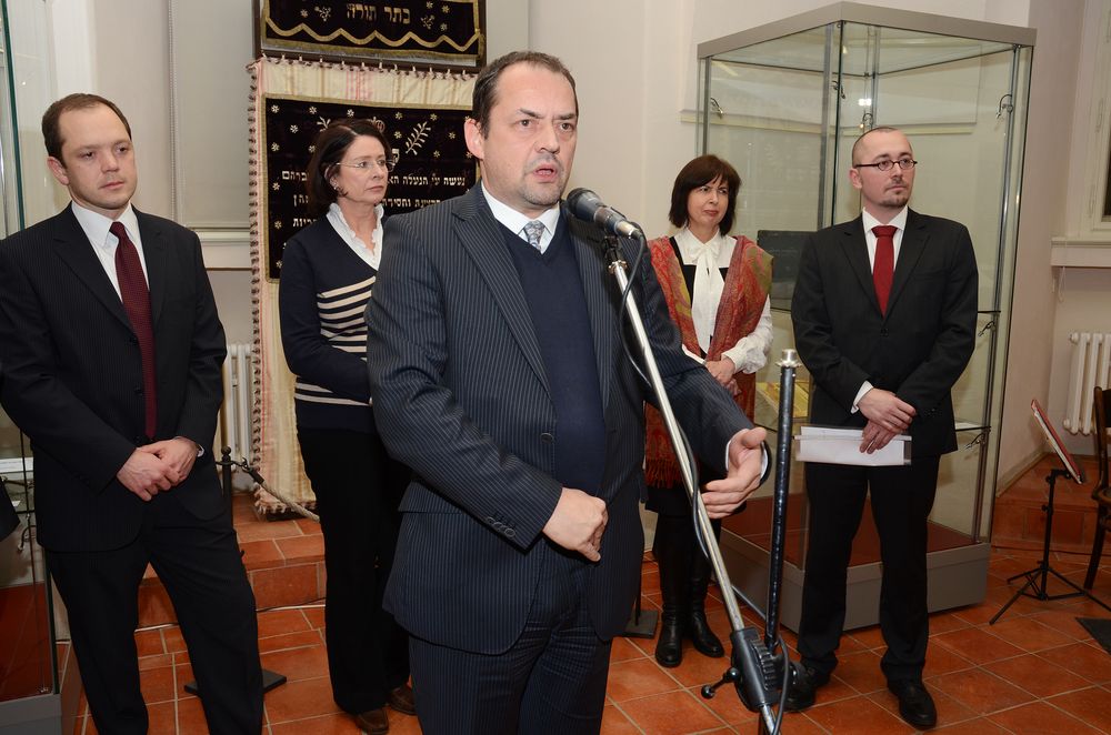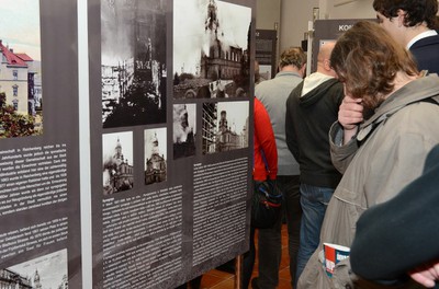 Fotogalerie z vernisáže výstavy, která navazuje na projekt Zničené kostely severních Čech 1945-1989. Veřejnosti jsou představeny dosud nezveřejněné fotografie ničení a likvidace židovských památek na území severních Čech mezi léty 1938–1989, doplněné archiváliemi i trojrozměrnými artefakty. Výstavu pořádá Sdružení pro obnovu památek Úštěcka, FF UK, FF UJEP, Národní památkový Ústav a Židovská muzeum v Praze ve spolupráci s Národní knihovnou ČR. Výstava se koná ve dnech 23. 1. – 3. 3. 2013 ve Výstavním sále Galerie Klementinum. Foto: Eva Hodíková, NK ČR.