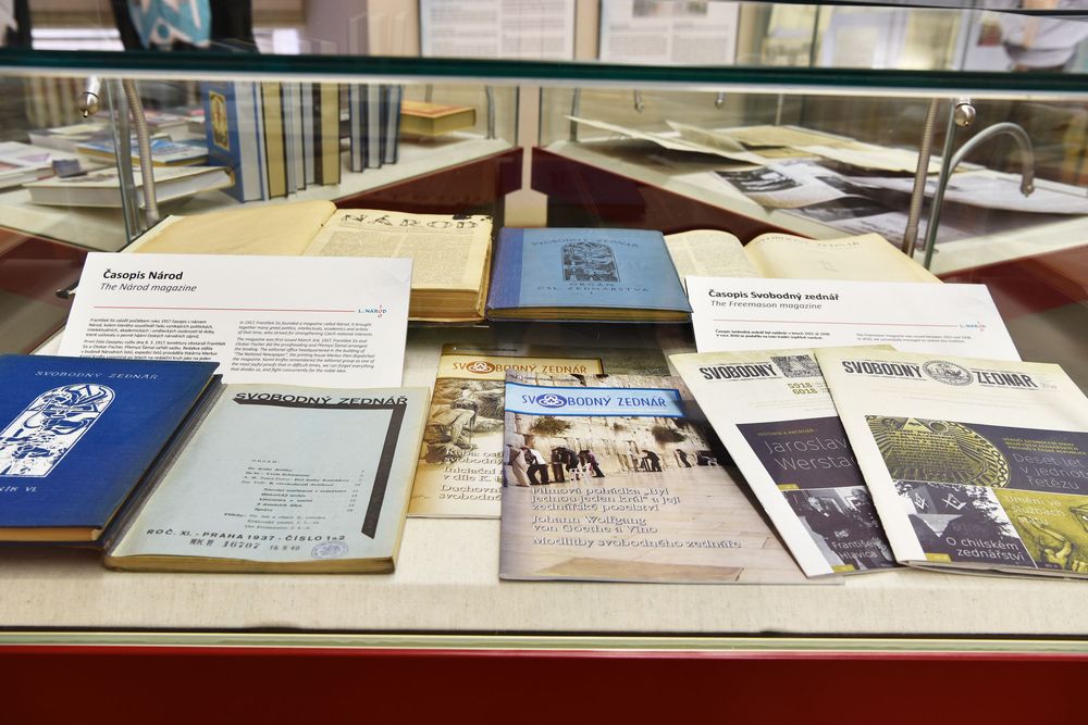 Fotogalerie z výstavy, která přibližuje vznik a historii svobodných zednářů v českých zemích. Představuje především Lóži Národ, která byla založena necelý půlrok po vzniku Československé republiky. S osudy lóže i jejích významných členů nás seznámí samotní svobodní zednáři. Foto: E. Hodíková, NK ČR.