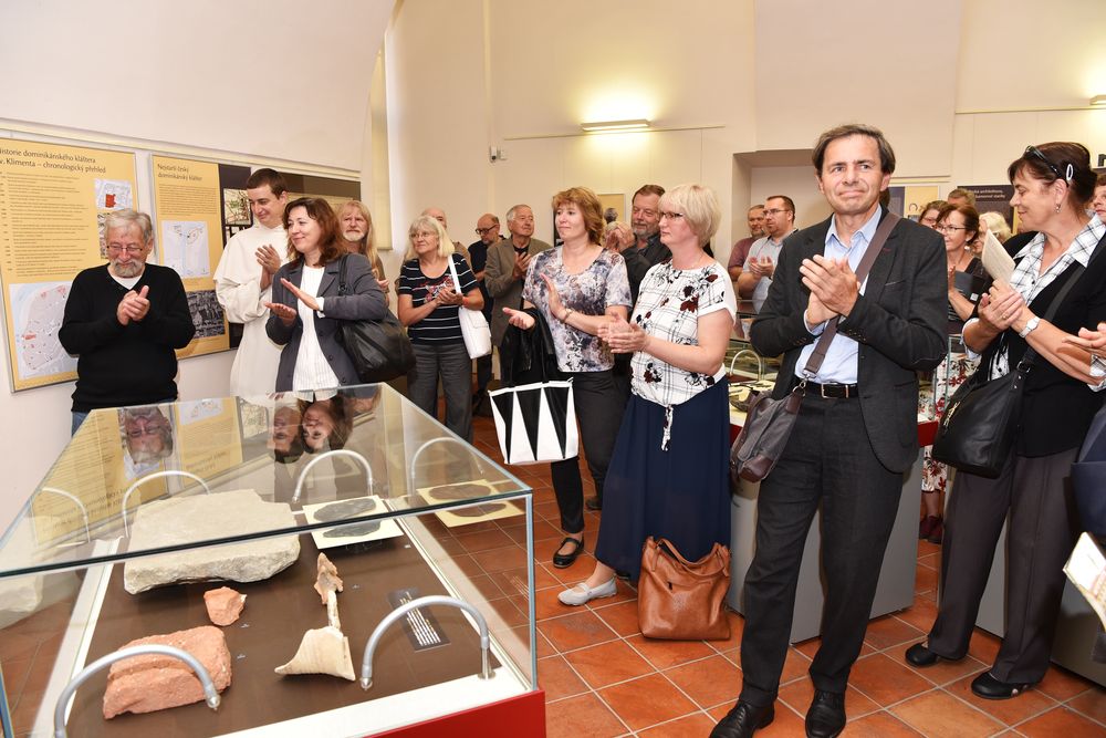 Fotogalerie z vernisáže výstavy, na níž archeologové prezentují poprvé výsledky svých mnohaletých výzkumů široké veřejnosti. Jejich nové objevy v mnoha směrech rozšiřují znalosti o nejstarší historii Starého Města pražského. Návštěvníci se mohou seznámit s podobou nejstaršího dominikánského kláštera, o němž se předpokládalo, že takřka zcela zanikl při výstavbě barokní jezuitské koleje. Rekonstruován je rovněž vzhled i proměna okolní středověké zástavby včetně dosud neznámých románských staveb. Poprvé je uvedena informace o nejstarších pohřebištích v této části města. Součástí výstavy jsou i nejzajímavější movité artefakty středověkého půvo­du, nalezené v letech 1997 až 2017. Výstava je pořádána ve spolupráci s Národním památkovým ústavem. Vernisáž se konala 11. září 2019. Foto: E. Hodíková, NK ČR.