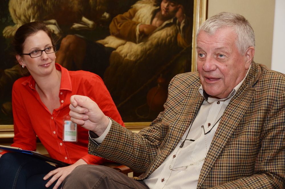 Fotogalerie z autogramiády a besedy s s publicistou, spisovatelem a dramatikem Karlem Hvížďalou (Restaurování slov, Moc a nemoc médií, Knížecí život, Jak myslet média, České rozhovory ve světě…), který představil svou poslední knihu Jak myslet umění. Akce se konala 24. 4. 2014 v Zasedacím sále NK. Foto: Eva Hodíková, NK ČR.
