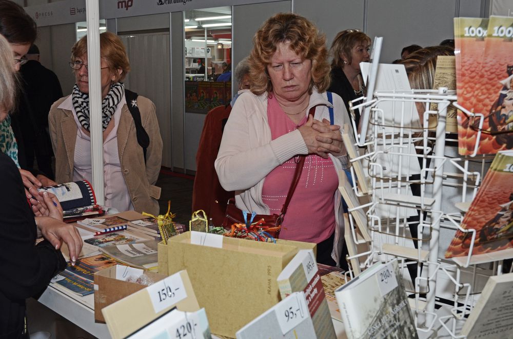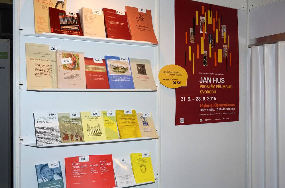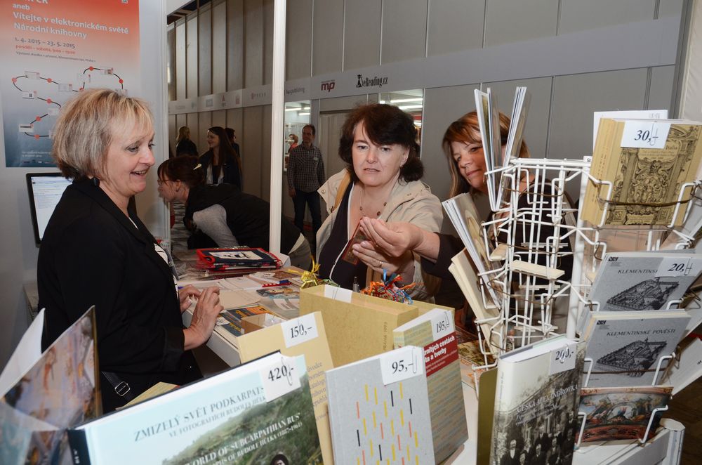 Fotogalerie z veletrhu Svě knihy Praha 2015. Národní knihovna ČR již tradičně přivítala návštěvníky ve svém stánku v pravém křídle Průmyslového paláce, kde je možné získat informace o knihovně a jejích službách. K zakoupení zde jsou jak publikace, které knihovna vydala, tak i propagační předměty. Foto: Eva Hodíková, NK ČR.