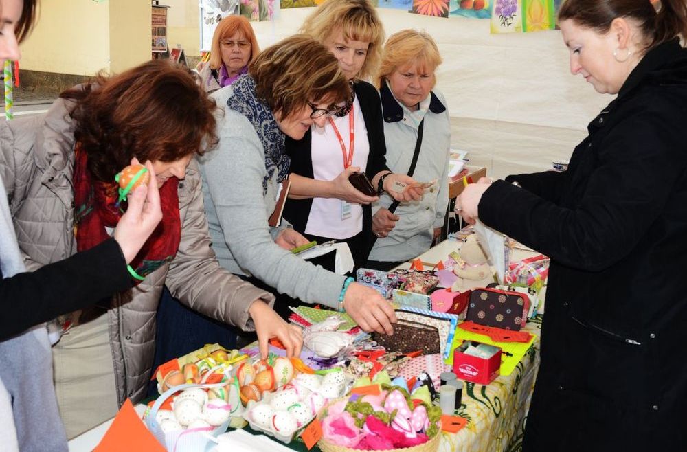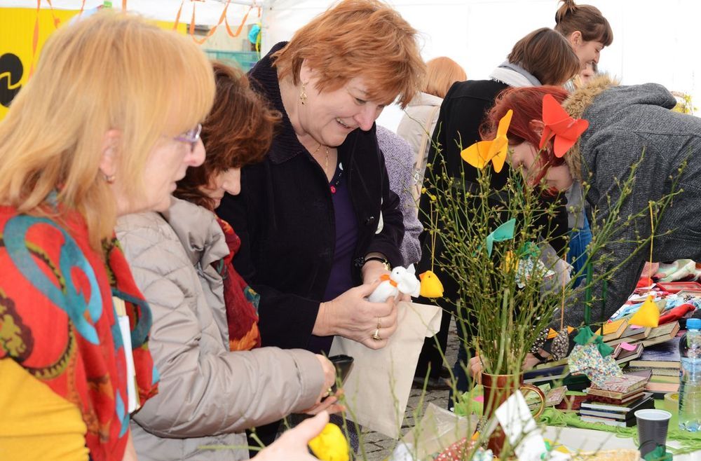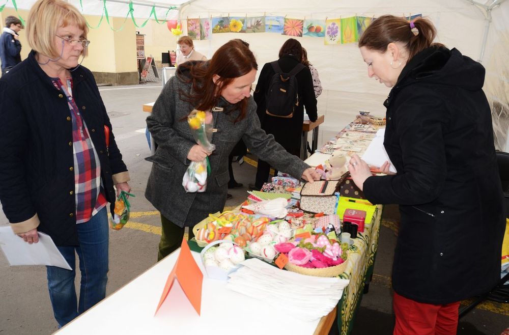 Národní knihovna ČR a Klub tvořivých knihovníků SKIP pořádali ve čtvrtek 26. 3. 2015 na hlavním nádvoří Klementina velikonoční jarmark. K vidění a zakoupení byly textilie z patchworku, šperky z nejrůznějších materiálů, velikonoční dekorace, výrobky z chráněných dílen a další. Výtěžek byl věnován nadačnímu fondu Klíček na provoz hospice. Foto: Eva Hodíková, NK ČR.