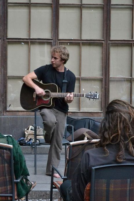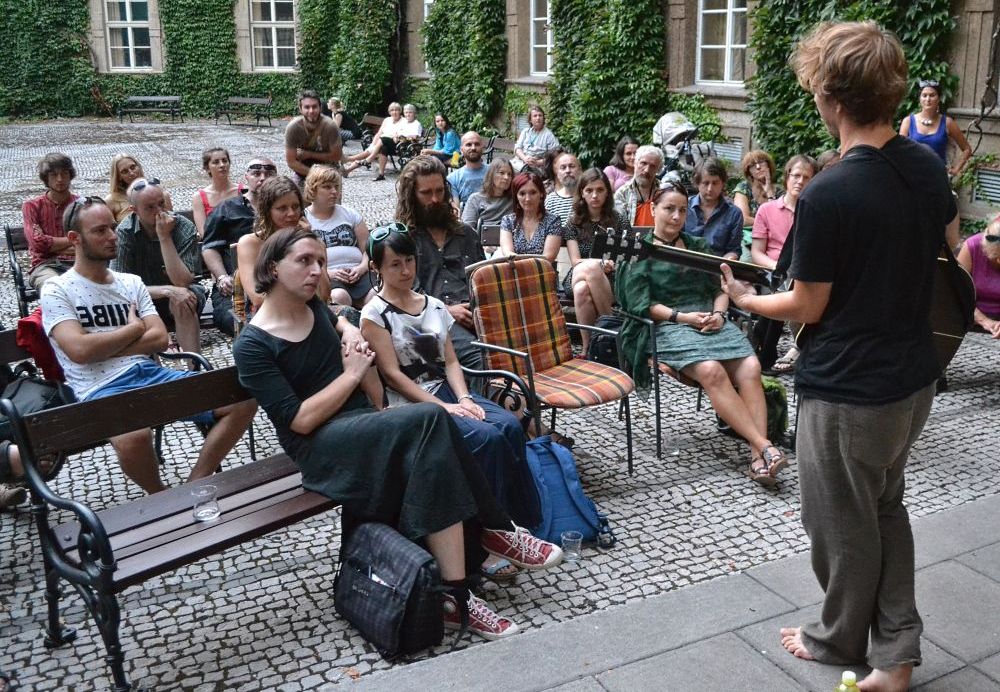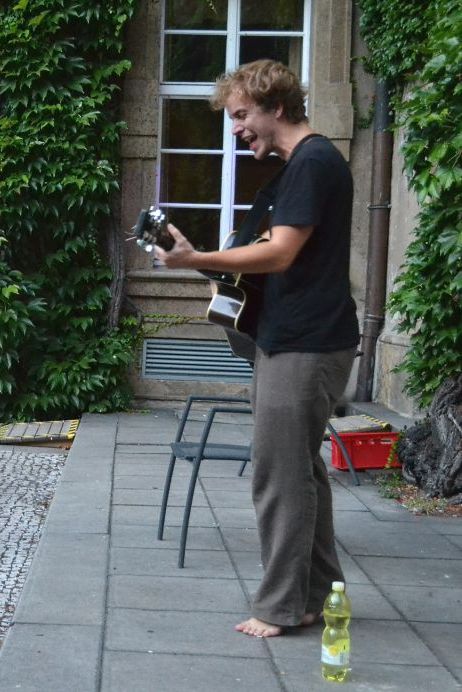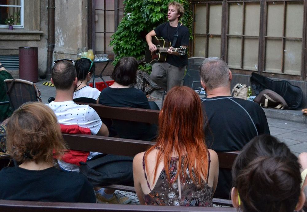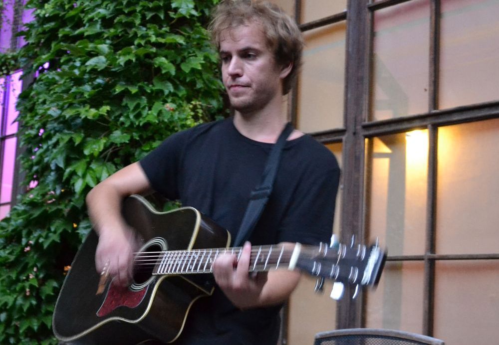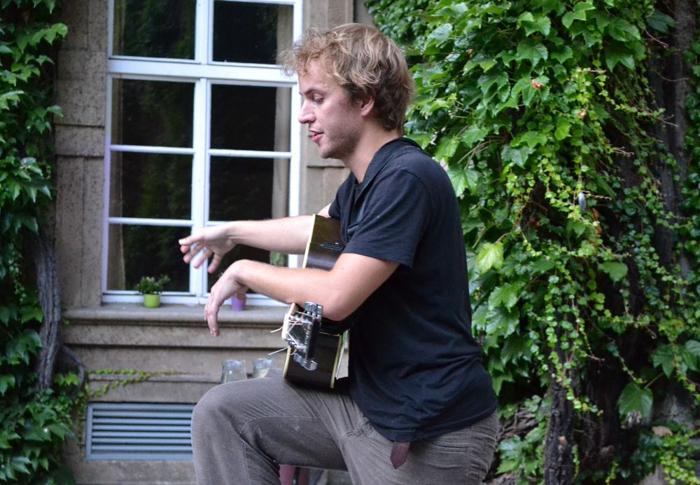 Koncert básníka a písničkáře Jakuba Čermáka (*1986). Sám tomu říká heavy soul. Je synem Jaroslava Waneka, člena kapely Už jsme doma. Věnuje se také natáčení hudebních videoklipů (pro Květy, Zrní nebo Hentai Corporation). Koncert se konal 12. září 2016 na Révovém nádvoří Klementina. Foto: T. Vaisová, NK ČR.