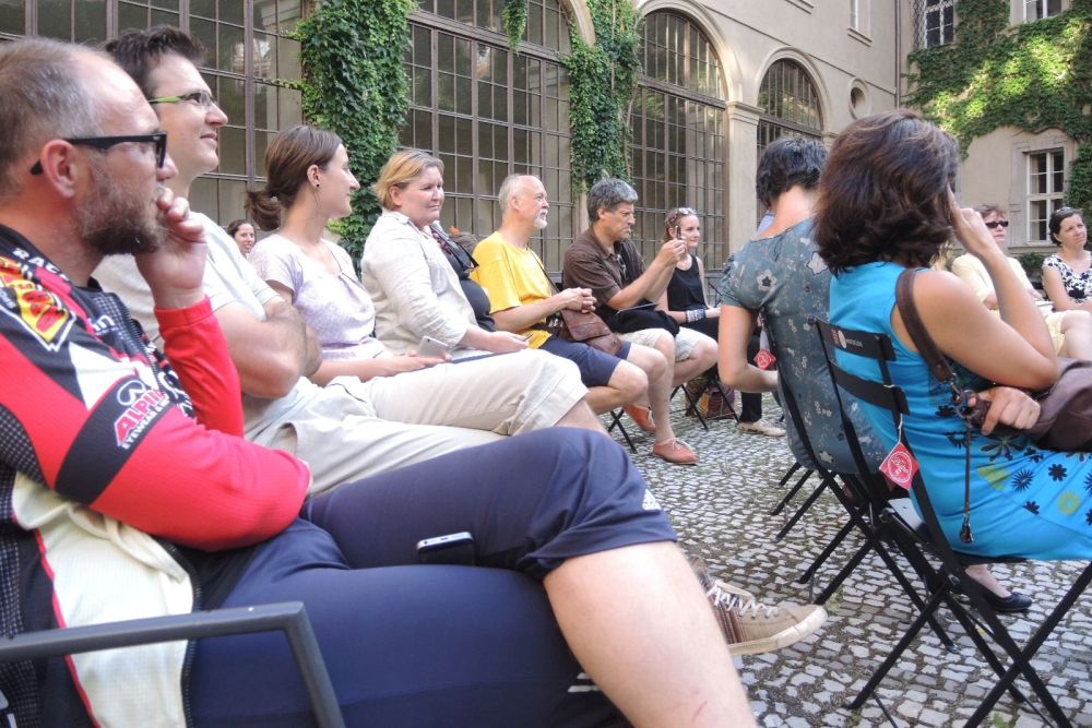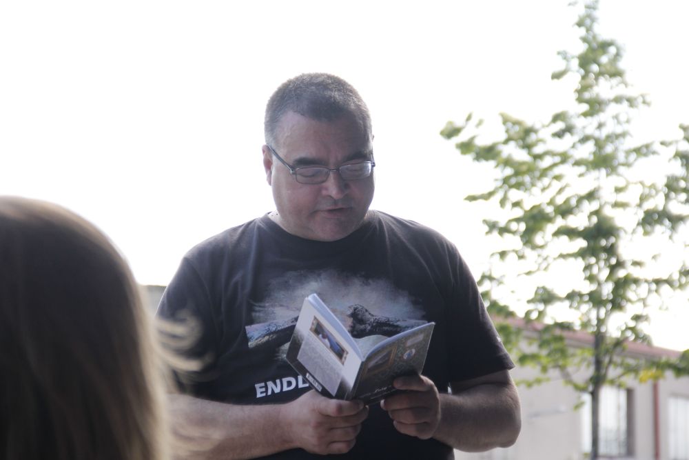 Autorské čtení dvou rumunských básníků: Mircea Dan Duta píše plynně česky, Corina Oproae španělsky. Setkání výrazných osobností na Révovém nádvoří Národní knihovny a v Centrálním depozitáři v Hostivaři se konalo 10. července 2017. Foto: Zdeněk Janál (1-6) a Monika Holubová (7-10).