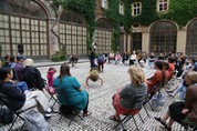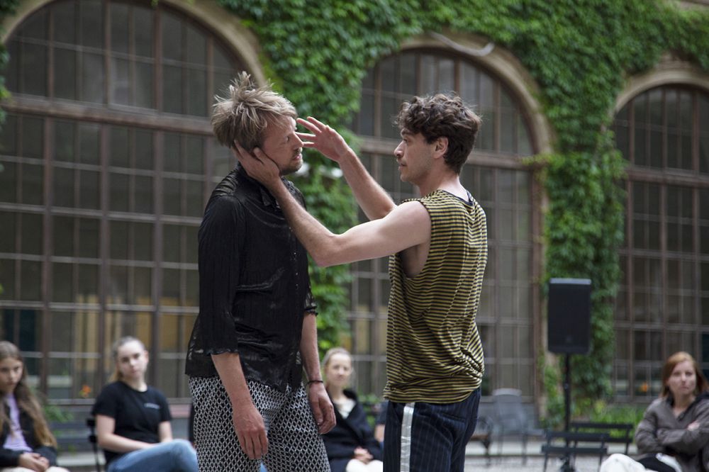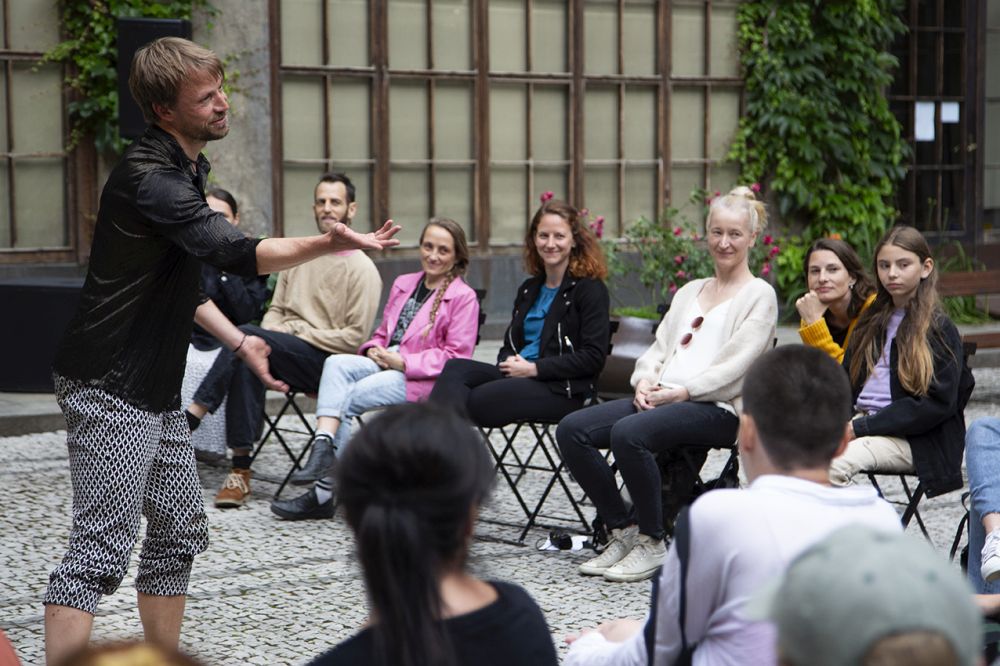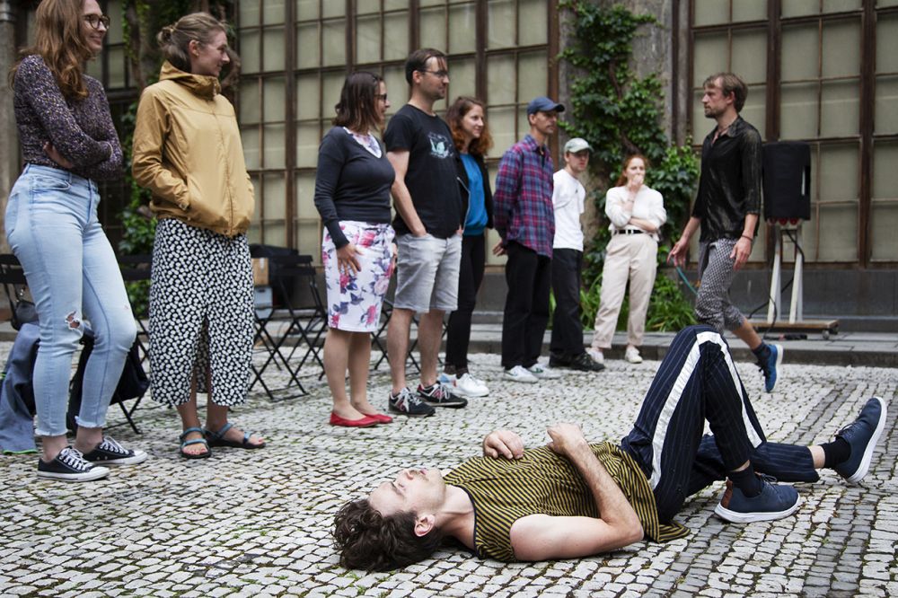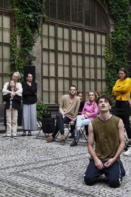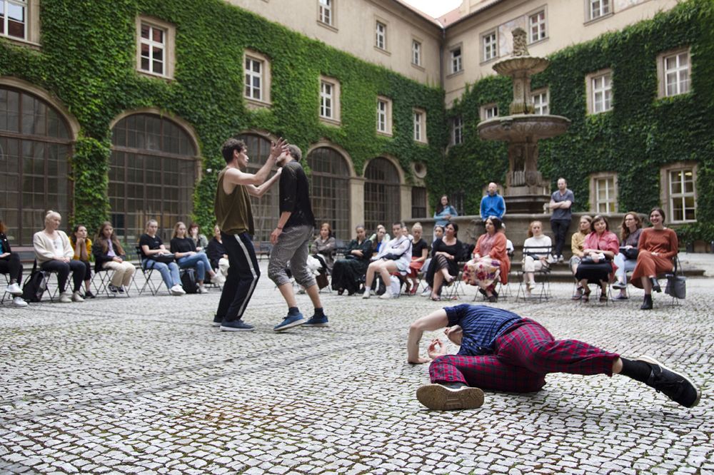 Všechno je to o… (It´s All About…) lidské blízkosti. V interaktivním představení rakouské choreografky Helene Weinzierl, kde nechybí nadsázka, nejsou protagonisty jen tři mužští performeři, ale i vy sami. Nejprve ve vlastním světě, posléze ve vztahu s druhými, společně vytvářejíce novou realitu. Na první pohled zábavná setkání však v sobě skrývají i absurditu současné společnosti. O čem je život? O všem a o ničem. Taneční představení se konalo na Révovém nádvoří Klementina ve dnech 23. - 24. 6. 2023. Foto: M. Tichá, NK ČR.