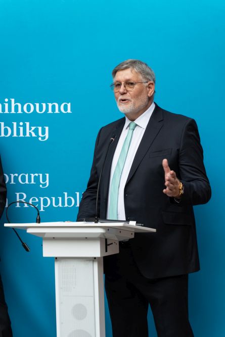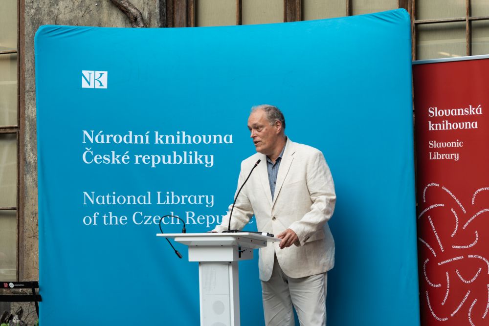 Letošní Cenu Rudolfa Medka obdržel historik prof. Vratislav Doubek, a to za dlouhodobý výzkum a interpretaci česko-ruských vztahů, zejména pak českého pohledu na ruskou realitu, a dále za popularizaci témat spojených s českou státností a se vznikem samostatné Československé republiky v roce 1918. Předání ceny se uskutečnilo za účasti ministra kultury Mgr. Martina Baxy ve čtvrtek 5. září 2024 v prostorách pražského Klementina a bylo součástí programu slavnostního večera ke stému výročí existence Slovanské knihovny. Foto: Z. Homolka Fedorová, NK ČR.