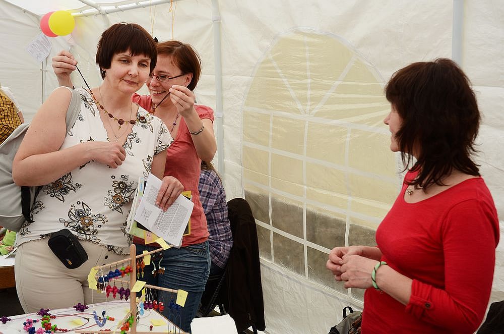 Národní knihovna ČR a Klub tvořivých knihovníků SKIP uspořádali 25. dubna 2013 první jarní jarmark v Klementinu. K zakoupení byly šité a malované šperky, obrázky, enkaustické a akrylové obrázky, šperky s polodrahokamy, jarní dekorace a mnohé další. V jarní nabídce představily své výrobky také chráněné dílny. Výtěžek byl tradičně věnován nadačnímu fondu Klíček na provoz dětského hospice. Foto: Eva Hodíková, NK ČR.