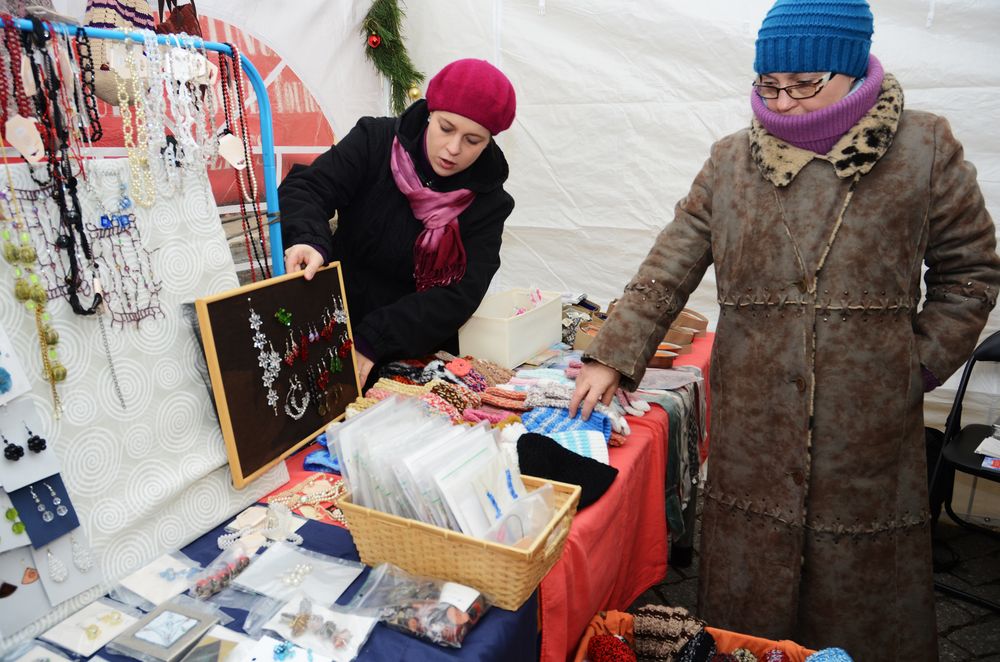 Fotogalerie z vánočního jarmarku v Klementinu, který se konal 4.12. 2013. Jarmark nabídl vánoční atmosféru a inspiraci, k vidění i zakoupení byly šperky z nejrůznějších materiálů, textilní doplňky, výrobky ze dřeva či papíru, korálky, patchworkové textilie, keramika, vánoční dekorace a mnohé další. Na závěr jarmarku byl slavnostně rozsvícen "národní" strom. Pořádala Národní knihovna ČR a Klub tvořivých knihovníků SKIP. Výtěžek z jarmarku bude věnován nadačnímu fondu Klíček na provoz dětského hospice. Foto: Eva Hodíková, NK ČR.