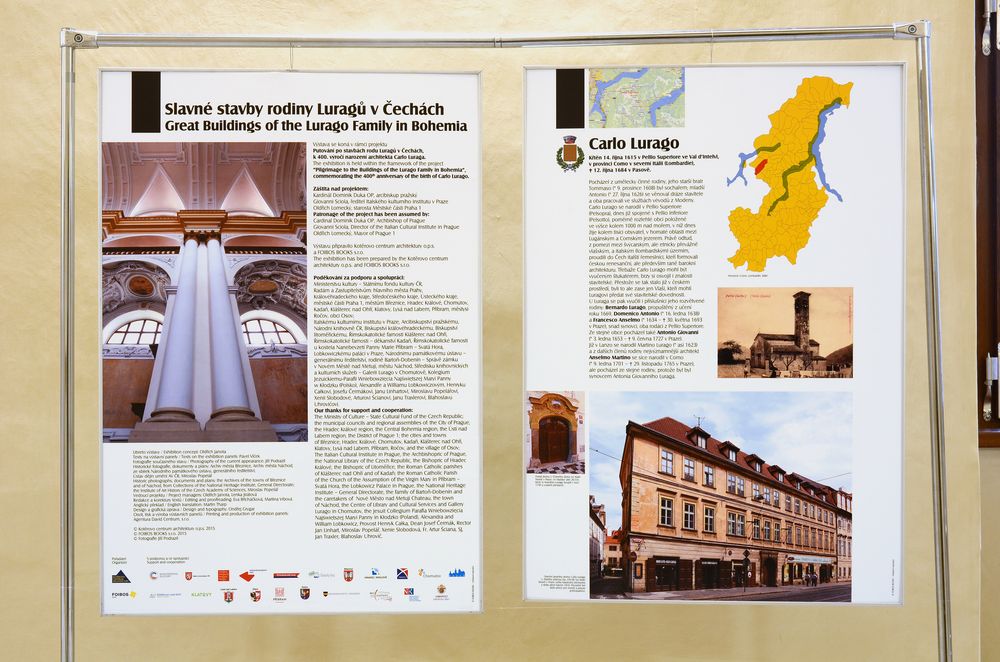 Výstava, kterou připravilo Kotěrovo centrum architektury, představuje prostřednictvím putování po stavbách Carla a Anselma Luragů v jednotlivých krajích, městech a místech alespoň část jedinečného architektonického a kulturního dědictví, zachovaného do dnešních dnů. Křižovnická chodba 15. 12. 2015 - 15. 1. 2016. Foto: Eva Hodíková, NK ČR.