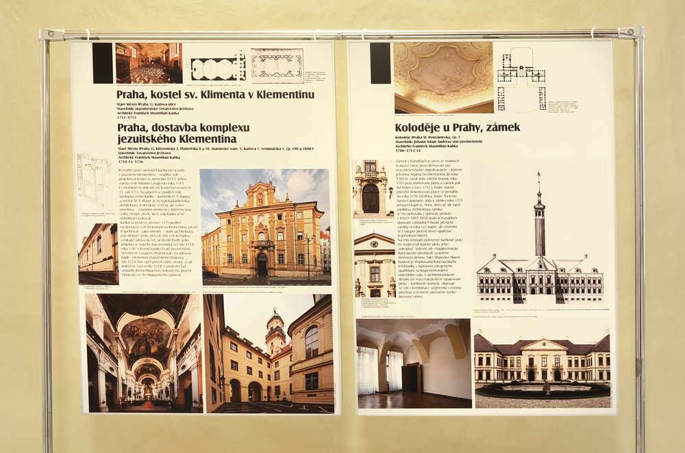 Výstavu u příležitosti 250. výročí úmrtí prvního původem českého velikána barokní architektury pořádá Kotěrovo centrum architektury o.p.s ve spolupráci s nakladatelstvím FOIBOS BOOKS. Panelová výstava představuje reprezentativní výběr 25 staveb z rozsáhlé tvorby F. M. Kaňky, který je považován za nejproduktivnějšího a nejvyhledávanějšího stavitele české šlechty. Vedle Santiniho a Dientzenhoferů se stal též umělecky nejvýznačnějším architektem českého baroka. Výstava se koná ve dnech 5. 10. – 10. 12. 2016 na Křižovnické chodbě Klementina. Foto: E. Hodíková, NK ČR.
