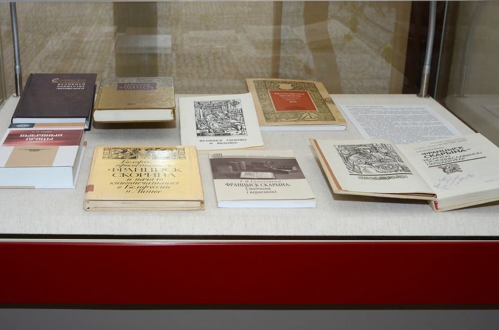 Fotogalerie z výstavy, která je jednou ze série akcí připomínajících vydání prvního překladu Bible do církevní slovanštiny. František Skorina, lékař a překladatel pocházející z Polocku v dnešním Bělorusku, vytiskl v Praze v letech 1517–1519 pod názvem „Bible ruská“ celkem 23 starozákonních knih. Od vydání Bible ruské odvozuje několik východoslovanských národů, zejména národ běloruský, počátek svého písemnictví. Foto: E. Hodíková, NK ČR.