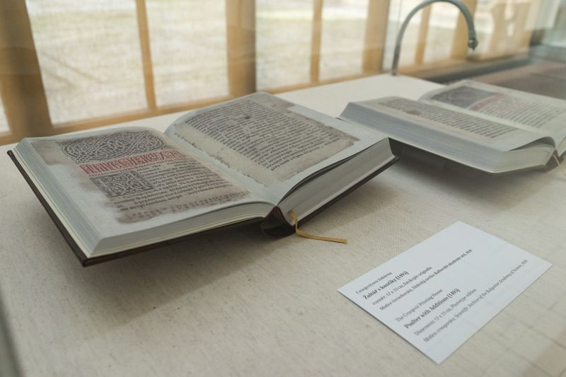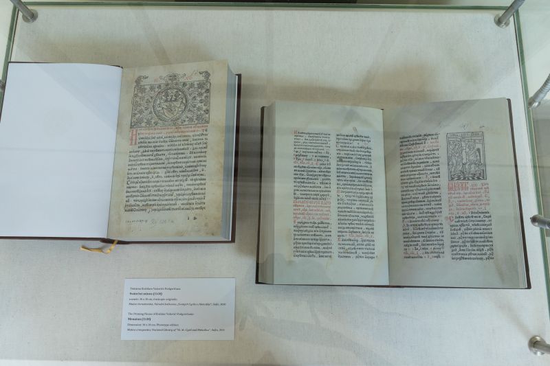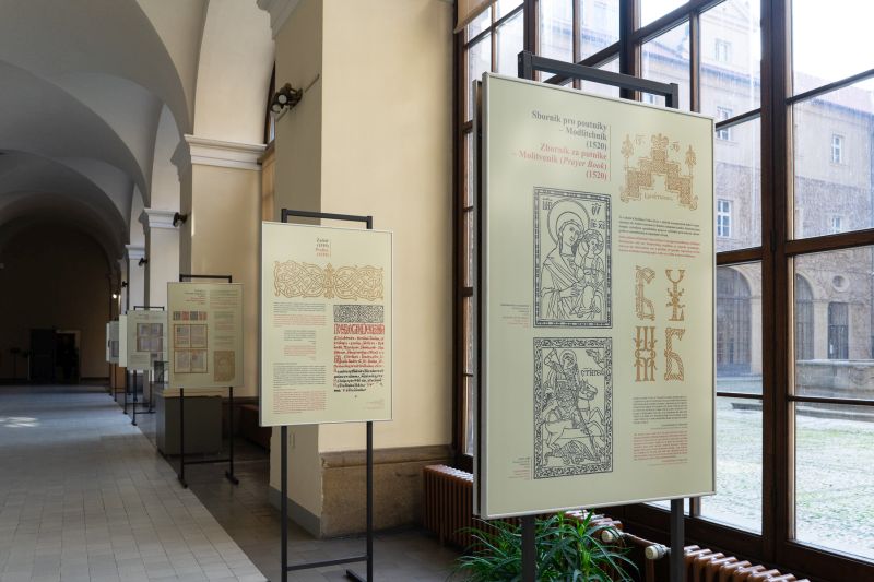 Fotogalerie z výstavy, kterou připravila Matice černohorská a pořádá ji společně se Slovanskou knihovnou. Formou panelů v češtině a angličtině přehledně představuje toto významné počáteční období slovanského knihtisku, jeho hlavní osobnosti a jejich působení. Díky mnoha reprodukcím přibližuje nejdůležitější díla vydaná v obou zmíněných tiskařských dílnách. Dva tituly – Žaltář s kantiky (1495) vydaný Ðurđe Crnojevićem a Sváteční minea (1538) z dílny Božidara Vukoviće – jsou prezentovány v podobě fototypického vydání. Foto: Zuzana Homolka Fedorová, NK ČR.